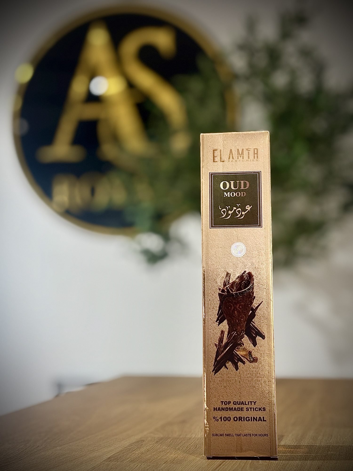 Bâtonnets d’encens Golden Oud El Amir Parfumier, au parfum riche et chaleureux d’oud, parfaits pour créer une ambiance luxueuse et enveloppante.