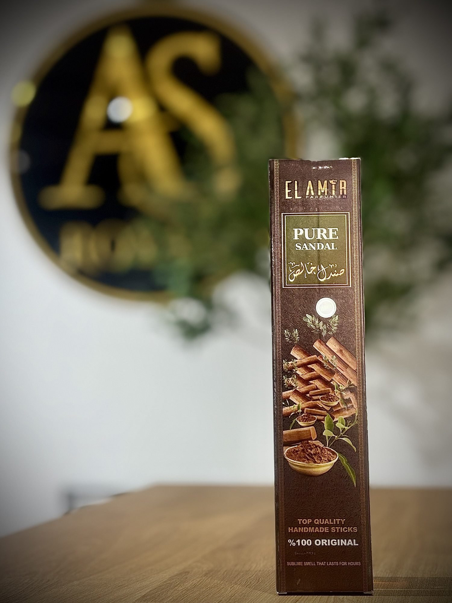 Bâtonnets d’encens Pure Sandal El Amir Parfumier, aux notes boisées de santal, parfaits pour instaurer une ambiance apaisante et chaleureuse.
